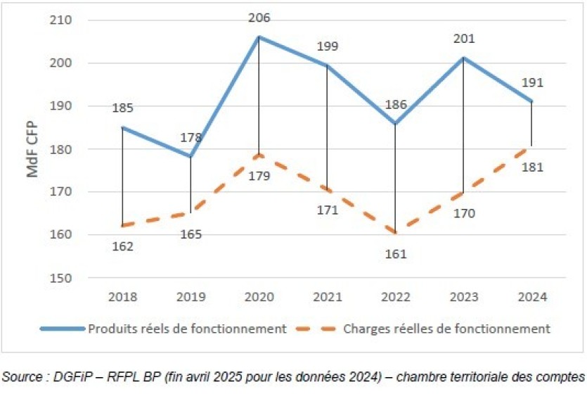 La CTC alerte également d’un risque "d’effet de ciseaux" auquel s’exposent les institutions calédoniennes, c’est-à-dire des charges de fonctionnement qui pourraient bientôt dépasser les recettes, plombées par une baisse de 17 % des produits de la fiscalité et par un affaiblissement des dotations. La Nouvelle-Calédonie est particulièrement concernée, ses charges réelles de fonctionnement ayant augmenté de 45 % en 2024, alors que ses recettes ont fortement diminué.