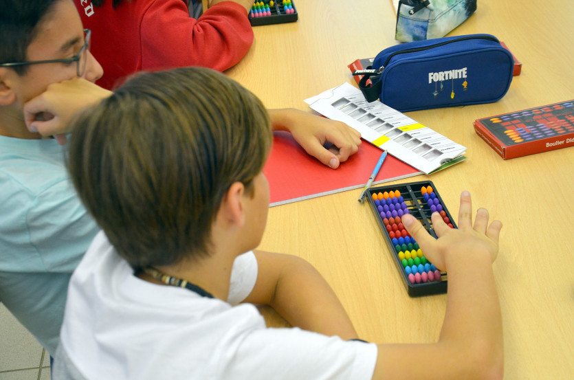 Ce jour-là, il rappelle la règle pour réaliser des additions. "Au début, cela demande un petit effort mais on maîtrise rapidement les règles du boulier. C'est un outil qui donne du sens, la manipulation permet de mieux visualiser et de renforcer les connaissances fondamentales."