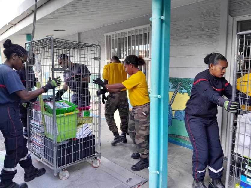 Le nettoyage occupe une place importante dans les travaux à mener pour réhabiliter les établissements scolaires. Photo Anthony TejeroAu collège de Kaméré, les dégâts sont également importants : deux bâtiments, cinq salles de classe, la vie scolaire, le CDI ou encore la salle des professeurs et le pôle santé ont été détruits ou dégradés. Dans ce contexte, une réorganisation interne est en cours pour permettre d’accueillir les 370 élèves sur place "au plus vite", assure la directrice Françoise Audureau, qui ne peut pas encore avancer une "date précise" mais qui tient à remercier le travail des jeunes du RSMA. "C’est super ! Ils y mettent tout leur cœur et c’est en partie grâce à eux que nous pourrons faire une rentrée plus rapide et plus sereine."