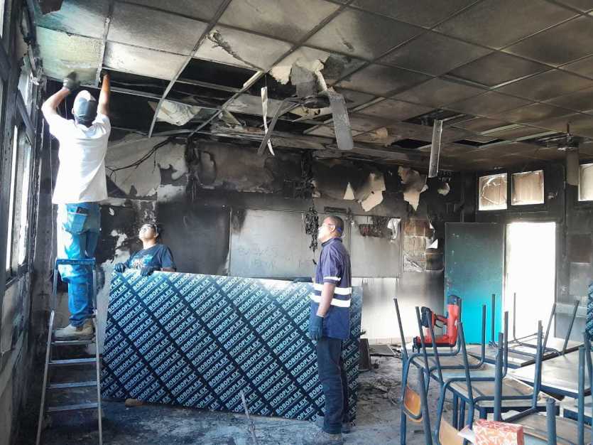 Aux collèges de Kaméré et de Rivière-Salée, la province Sud a mandaté de nombreuses sociétés privées pour sécuriser et rénover les locaux. Photo Anthony TejeroAu collège de Rivière-Salée, où sont inscrits 384 élèves, les dégâts sont considérables, avec trois bâtiments sur quatre "perdus". "Il y a eu des saccages, des incendies et l’eau utilisée pour éteindre le feu a détruit les systèmes électriques. Nous avons aussi perdu tous nos serveurs. La partie informatique et administrative n’existe plus non plus, liste Éric Vallon, le chef d’établissement. Aujourd’hui, nous ne pouvons accueillir nos personnels en sécurité que dans le réfectoire."