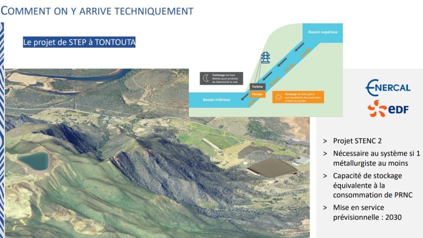 Une première installation de batterie est prévue en 2026 à Boulouparis, puis en 2028 à Tontouta. Mais, c’est le projet de STEP (station de transfert d’énergie par pompage) à Tomo en 2030 (puis un autre à Vavouto en 2035), qui porte tous les espoirs. Enercal travaille dessus depuis trois ans et l’a notamment présenté à Manuel Valls lors de son déplacement en Nouvelle-Calédonie fin février. La STEP, un système qui a plus d’un siècle et existe dans de nombreux pays du monde, constitue une des meilleures solutions, considère Jean-Gabriel Faget. "C’est le plus économique dans la durée", avec une durée de vie de "plusieurs générations". Reste l’investissement colossal de départ : 50 milliards de francs pour la seule STEP de Tomo. Le seul moyen de financer un tel projet ? "Un soutien massif de l’État." "La question de l’électricité fera partie de celle autour de la métallurgie, puisqu’en baisser le prix est un enjeu pour la pérennité de la filière."