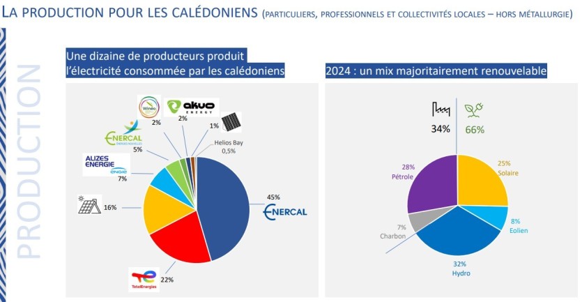 La consommation des particuliers, entreprises et collectivités a connu la même trajectoire baissière (-7,5 %) que celle des métallurgistes par rapport à la moyenne des années précédentes, qui s’établissait à 830 GWh par an entre 2017 et 2023, contre 766 GWh en 2024. Là aussi, plusieurs explications, dont certaines liées au contexte des émeutes – fermeture d’entreprises et départs -, mais aussi l’augmentation de l’autoconsommation avec le photovoltaïque, qui représente 16 % de la production.