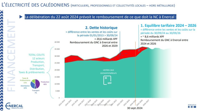 Avec une trésorerie dans le rouge depuis cinq ans, Enercal a accumulé une dette technique, se retrouvant dans l’incapacité de financer un certain nombre de travaux d’entretien, "repoussant des investissements, ainsi qu’un certain nombre d’opérations de maintenance". La "ligne rouge" étant de ne pas altérer la sécurité des ouvrages et des personnes. "On a reporté des dépenses de gros entretiens, et c’est cet argument qui a aussi pesé dans la décision du gouvernement et du Congrès l’année dernière de procéder à cet ajustement, parce que ça ne pouvait pas durer beaucoup plus longtemps. Sinon, cela se serait traduit très certainement par des taux de panne et des défaillances de plus en plus nombreuses. On a réagi à temps, et nous allons nous employer à résorber cette dette technique."