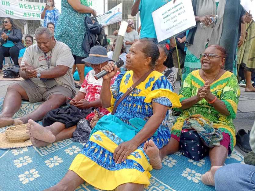 Sidony, enseignante à l’île des Pins, n’a pas hésité, avec des collègues, à poser deux jours sans solde pour venir "soutenir" et "défendre le patrimoine" de la Ddec. Photo Anthony TejeroParmi la foule, certains employés n’ont pas hésité à poser des jours "sans solde" et prendre l’avion, notamment depuis l’île des Pins. "On ne saucissonne pas l’enseignement catholique. On ne peut pas faire de différence entre personnels et enseignants et se séparer de certains. On est tous ensemble, martèle Sidony, enseignante à Vao. On est là pour sauver un héritage que nos anciens ont choisi avec les frères et les sœurs missionnaires. On a le même taux de réussite que le public, donc on ne peut pas faire disparaître l’enseignement catholique de ce pays. Il faut juste plus d’équité. Et à l’île des Pins, c’est tout simplement impensable, car notre école et collège sont les seuls établissements scolaires. Nous sommes venus dire notre espoir, pas notre pessimisme."