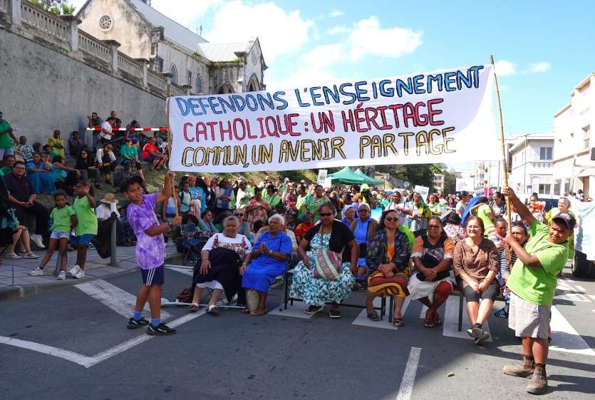 Ces menaces de fermeture d’établissements scolaires sont d’autant plus redoutées dans les petites communes de Brousse, où l'’enseignement privé est un pourvoyeur d'emplois non négligeable. Une raison qui a poussé les équipes de l’école Sainte-Thérèse, à Canala, à venir en nombre ce jeudi matin dans le centre-ville de Nouméa. "C’est essentiel pour les enfants, mais c’est aussi important pour l’économie locale, car la Ddec emploie vingt personnes et donc autant de familles, dans une commune où ce serait difficile de retrouver du travail, confient Micheline, aide maternelle, et Marie, agent de cantine, qui ont toutes deux fait leur scolarité dans cette école "fondée par les anciens" à laquelle elles se disent très "attachées".