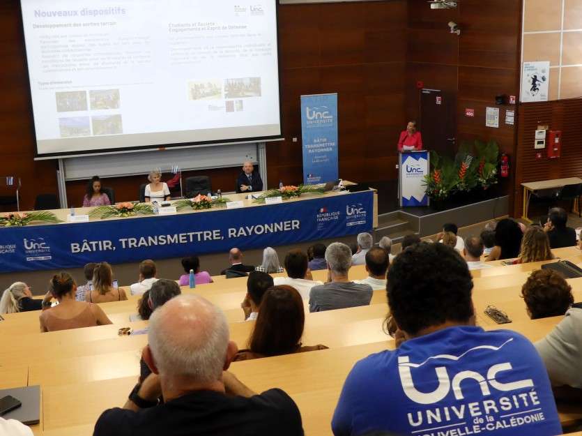 Des élus, des partenaires et des représentants de la société civile ont assisté à la rentrée solennelle de l’UNC, mardi 3 février. Photo Baptiste GouretParmi les grands projets de l’université, une nouvelle infrastructure scientifique pourrait également voir le jour cette année : le Centre de recherche sur les maladies vectorielles, "réponse concrète aux effets du changement climatique" et "pôle d’excellence en entomologie tropicale au service de la santé publique". L’autre programme notable, déjà évoqué l’an dernier : la création d’un Institut d’études politiques (IEP) du Pacifique, intégré au réseau Sciences Po. L’UNC espère ouvrir la formation, étalée sur cinq semestres, dès la rentrée 2027. Avant ça, une "Masterclass" de la science politique dans le Pacifique sera donnée du 22 au 27 juin 2026 à vingt participants (étudiants, agents, élus…) pour commencer à bâtir un réseau dans la région.