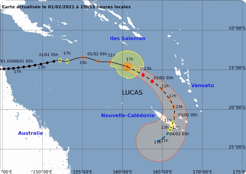 - Lucas arrive par le nord-est. Attendue ce mercredi, cette dépression tropicale forte, formée en mer de Corail, devrait être la première perturbation à toucher la Nouvelle-Calédonie cette année. La dépression pourrait passer par les îles Loyauté avant de frapper la Grande Terre. Et occasionner des vents violents et de fortes pluies.Les météorologues attendaient un cyclone en février. Le voilà qui arrive depuis le nord-est de la Calédonie. Pour l'instant, il s'agit d'une dépression tropicale forte, formée en mer de Corail. Elle avance à une vitesse de 30 km/h vers le Caillou. Ses rafales atteignent au plus fortIl vous reste 94% de l'article à découvrir.Cet article est réservé aux abonnés.