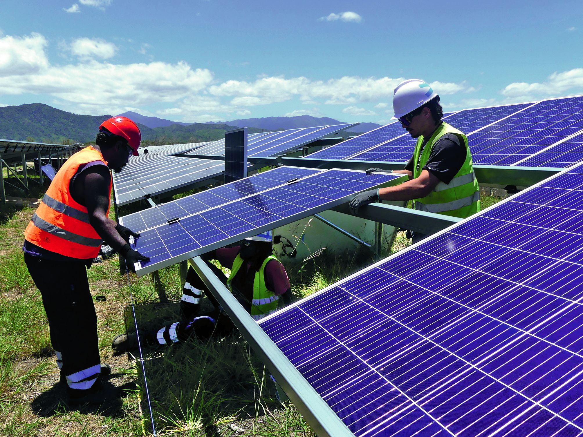 - Au fil des accords délivrés par le gouvernement, les fermes photovoltaïques poussent comme des champignons depuis deux ans à travers tout le pays. Un secteur de plus en plus concurrentiel et de moins en moins cher qui prouve que l’énergie solaire a de beaux jours devant elle. Reportage à Boulouparis où la plus grande centrale est en cours de construction.« J’apprends de nouvelles techniques et un nouveau métier, glisse Carine, 40 ans, entre la pose de deux panneaux solaires. C’est une bonne expérience, c’est la première fois que je travaille sur un chantier. » Et ce n’est peut-être pas la dernière tant les travaux de construction deIl vous reste 97% de l'article à découvrir.Cet article est réservé aux abonnés.