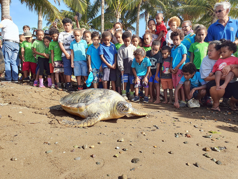 - Caroline, une tortue verte de l'Aquarium des lagons, a été relâchée mercredi sur la plage de Botaméré à Thio, son habitat d'origine. Offerte à l'aquarium en 2014 par les autorités coutumières de l'aire Xârâcùù, elle était devenue trop grande pour les bassins et difficilement manipulable pour les soigneurs. La cérémonie s'est déroulée à l'endroit de la plage le plus propice à sa mise à l'eau, sous les yeux des écoliers et des habitants du village et de la mission.Avant sa mise à l'eau, la tortue a été présentée à 120 élèves de l'école primaire Saint-François et du groupe scolaire de Thio. L'événement a pu avoir lieu grâce à la mairie, qui a prévenu les habitants. Photo Edouard HautboisCaroline a été sortie de son bassin à l'aide d'unIl vous reste 69% de l'article à découvrir.Cet article est réservé aux abonnés.