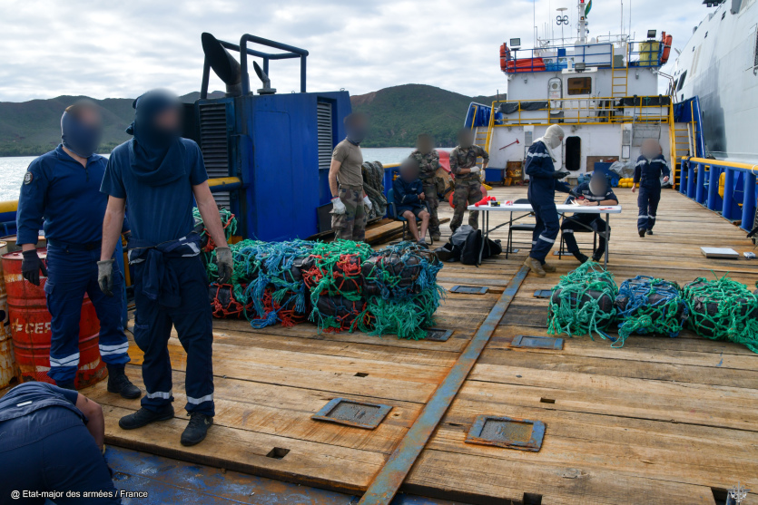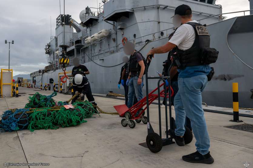 L’opération d’arraisonnement s’est déroulée dans les eaux internationales, à environ 400 milles nautiques de Nouméa, sous la surveillance du Gardian. Photo État-major des arméesEn Nouvelle-Calédonie, la cocaïne arrive surtout par colis postaux
