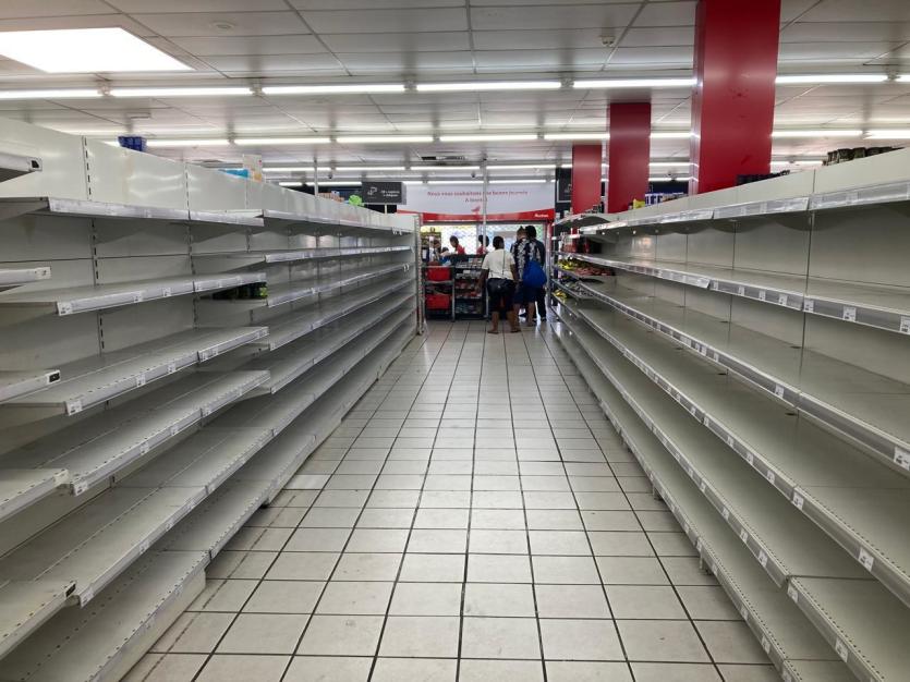 [13h00] Au supermarché Michel-Ange, à Motor Pool, les rayons sont désormais totalement vides. L'approvisionnement des magasins devient une urgence absolue.