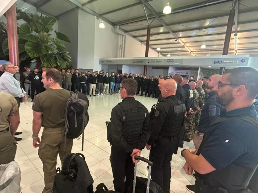 Une partie des effectifs supplémentaires envoyés en Nouvelle-Calédonie sont arrivés dans la nuit à l’aéroport de La Tontouta. Photo Haut-CommissariatPendant que les forces de l’ordre déployées sur le terrain tentaient de contenir les émeutiers, les effectifs supplémentaires de gendarmerie et de policiers ont atterri dans la nuit à l’aéroport de La Tontouta. "Les renforts annoncés par le président de la République sont arrivés en Nouvelle-Calédonie. La fermeté et le rétablissement de l’ordre républicain sont impératifs", a indiqué le ministre de l’Intérieur et des Outre-mer, Gérald Darmanin, sur les réseaux sociaux, partageant une vidéo de leur descente d’avion. En tout, 1 000 gendarmes et policiers supplémentaires sont attendus. Cela portera à 2 700 les effectifs des forces de l’ordre sur le territoire.