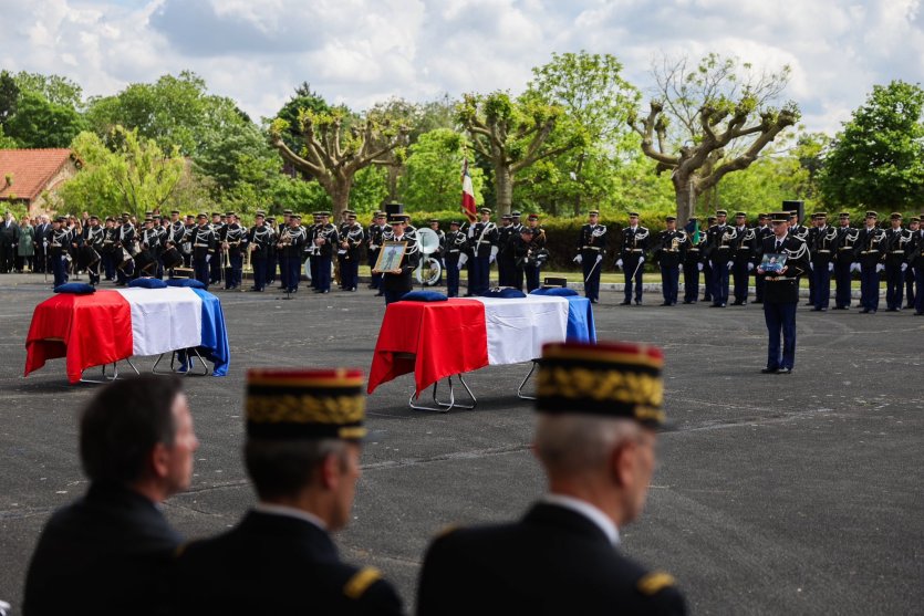"Nous puiserons dans votre exemple la force de continuer la mission", a ajouté Gabriel Attal, face aux cercueils des deux gendarmes disparus.
