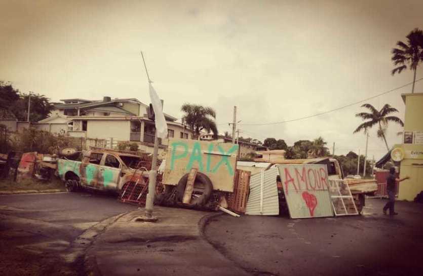De nouveaux messages font leur apparition sur les barrages. Photo DR[13h45] Pendant que 600 gendarmes tentent de reprendre la maîtrise de la route entre Tontouta et Nouméa, d'autres étaient mobilisés au port autonome de Nouméa pour prendre en charge "103 containers de denrées alimentaires et de médicaments", révèle le haut-commissariat. Une opération menée par la direction régionale des douanes de Nouvelle-Calédonie. "Les services de l'État sont mobilisés pour assurer l'acheminement de ces produits."