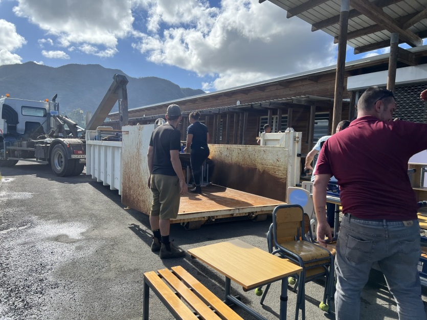 Alors que l’école Baptiste-Gustin fume encore, les parents d’élèves se sont organisés pour déménager les classes qui n’ont pas été touchées et ainsi préserver le maximum de matériel. Photo Mairie de PaïtaLe cœur du village touché