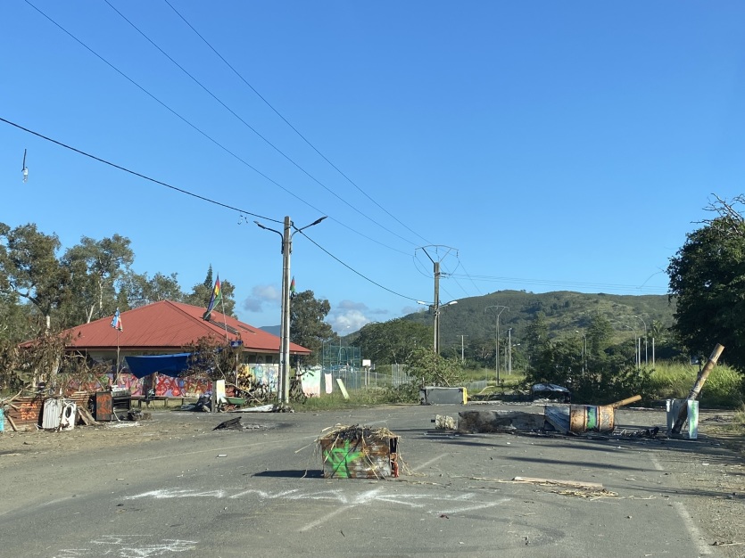 La RT1, à l’entrée de Païta sud, devant le quartier de Nogouta, est entravée en partie par des barrages. Photo Aurélia Dumté"Il n’y a plus rien"