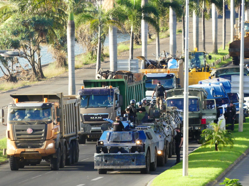 "La circulation n’est pas encore possible car beaucoup de déchets traînent et la route est très abîmée, indiquait dimanche soir, le haut-commissaire Louis Le Franc. Les émeutiers ont déplacé des carcasses de voiture, mis du bois, du métal, tout ça dégrade la voie. Les approvisionnements logistiques seront sécurisés. […] Notre détermination est totale. Nous sommes constamment sur le pont. Tout ça va se terminer, croyez-moi. Le rapport de force va s’inverser très vite."