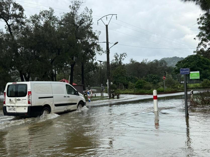 La RT1 était impraticable, mardi 24 février, à Bourail. La circulation a repris ce mercredi 25 février. Photo DRD’autre part, la caisse des écoles "a décidé d’interrompre le transport scolaire jusqu’à nouvel ordre afin de garantir la sécurité des enfants", rapporte la municipalité. Une casse sur le réseau d’eau touche également les secteurs Sortie Nord, Nandai, Taraudière, Nessadiou, Boghen, Téné. "Les équipes techniques ne peuvent pas intervenir tant que le niveau de l’eau n’aura pas baissé", prévient la ville.