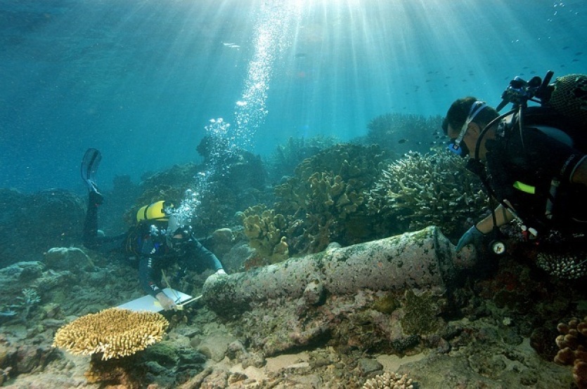 Découverte d’un canon appartenant à l’Astrobale ou à la Boussole, les deux navires de l’expédition Lapérouse, qui se sont échoués vers Vanikoro, aux Salomon.Parti de France en août 1785, Jean-François de Galaup, le comte de Lapérouse, a disparu en 1788 avec ses 220 hommes sur les deux navires, La Boussole et l’Astrolabe. Ils ont quitté le 10 mars 1788 l’Australie depuis Botany Bay, en direction du Nord-Ouest et donc vers la Nouvelle-Calédonie, avant de ne plus donner signe de vie.