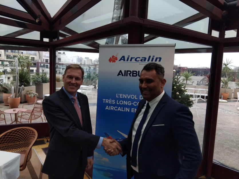 C’est depuis un restaurant du quai Branly, avec vue sur la tour Eiffel que le directeur général d’Aircalin Georges Selefen a acté, ce jeudi matin lors d’une conférence de presse, en présence de Wounter Van Wersch, vice-président exécutif à l’international d’Airbus l’achat de deux nouveaux appareils A 350 900.