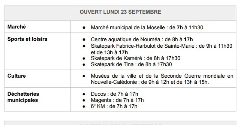 Source : Ville de NouméaAdministrations, banques et écoles fermées