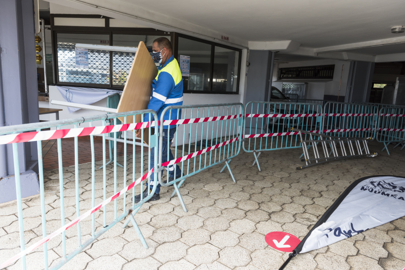 Les services de la ville de Nouméa ont installé barrières et autres mesures de sécurité dès ce vendredi, au marché municipal de Moselle. Il rouvre ses portes samedi à 5 heures. Photo Nicolas PetitLa police municipale, des contrats PPIC et des stewards urbains seront présents pour informer et guider les usagers. Le marché reprend ses heures d'ouverture habituelles, à savoir du mardi au dimanche, de 5 heures à midi.