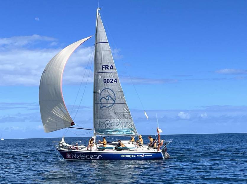 Blade Runner, le plus petit bateau de la régate, un monocoque de 9 mètres. Photo BRLe parcours prévoit également quatre points de passage obligatoires : le Phare Amédée, le Cap N’dua dans le Grand Sud, et les Cornes Est et Ouest au nord des îles Bélep. Un itinéraire qui "fait rêver" selon l’organisation. "Les marins naviguent entre récifs, tortues, baleines, atolls et îlots."