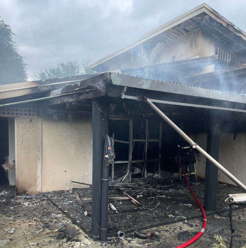 Arrivés sur place à 12h12, les six pompiers appuyés de deux camions ont mis deux heures pour venir à bout de ce sinistre qui a "complètement détruit" cette résidence de 200 mètres carrés, vide au moment des faits.