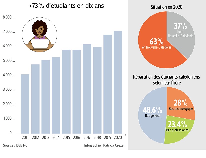 - L'Isee vient de publier une étude inédite sur l'évolution du parcours des bacheliers calédoniens qui mènent des études supérieures depuis dix ans. S'ils sont de plus en plus nombreux à poursuivre leur cursus, ils sont également de plus en plus nombreux à rester étudier sur le Caillou.Une étude inédite L'Isee (Institut de la statistique et des études économiques) a mené cette étude pour répertorier le nombre de jeunes Calédoniens qui poursuivent leurs études après leur bac dans un établissement de l'enseignement supérieur français (universités, écoles spécialiséIl vous reste 97% de l'article à découvrir.Cet article est réservé aux abonnés.