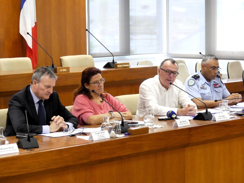 - Baptiste Gouret | Crée le 24.07.2025 à 17h45 | Mis à jour le 26.07.2025 à 18h41ImprimerDe gauche à droite : Jacques Billant, haut-commissaire, Sonia Backès, présidente de la province Sud, Yves Dupas, procureur de la République et François Haouchine, commandant de la gendarmerie de Nouvelle-Calédonie, lors de la présentation du bilan de la d Photo Baptiste GouretLes acteurs de la sécurité étaient réunis, jeudi 24 juillet, à l’hôtel de la province Sud dans le cadre d’un conseil provincial de prévention de la délinquance. L’occasion de dresser un premier bilan de la délinquance en 2025, qui laisse apparaître une hausse importante des actes violents, dont certains traduisent des situations sociales dégradées et "une paupérisation de la société".