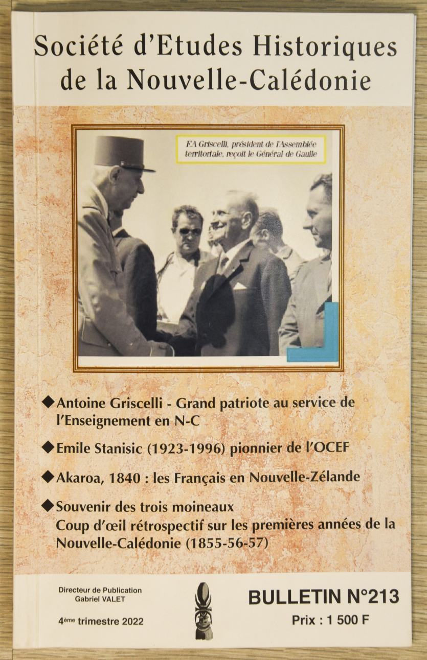 - Dans son 213e numéro, la Société d'études historiques de la Nouvelle-Calédonie dédie les douze premières pages à Antoine Griscelli, ce corse né à Ajaccio en 1901 et arrivé sur le territoire en 1927. Directeur de l'école de Bourail, puis de Voh, il s'engage dans le Bataillon du PacifiqueIl vous reste 84% de l'article à découvrir.Cet article est réservé aux abonnés.