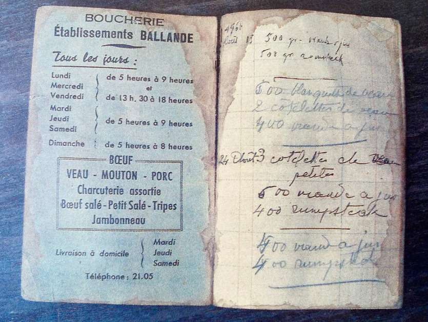Le carnet était rendu avec la commande. Un bordereau de commande y était joint. Rue de l’Alma, le comptable facturait sur une grande feuille sur laquelle il précisait le type de viande (" Vo " pour viande ordinaire, " Bo " pour viande à bouillir…), le poids, le prix et qu’il adressait au service comptabilité.
