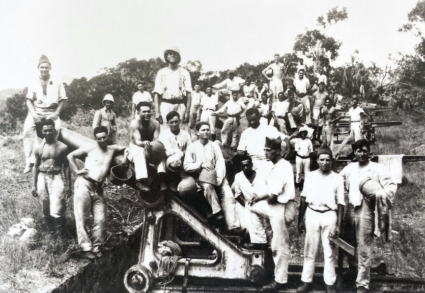 Ouen Toro, 1931. Cette photo date du temps où Auguste Blay, mon oncle, le mari d’Augustine, devait effectuer son service militaire. Auguste est tout à gauche, assis au bout du canon. Photo DRÀ l’âge de 35 ans, il est condamné à quinze ans de travaux forcés et à la transportation pour une histoire de recel.