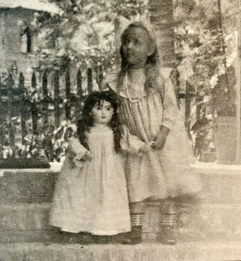 Emma Aimée Rose Engler, dite Rosette, est ici photographiée avec sa poupée par son beau-frère Maxime Meyer, photographe amateur au début du siècle dernier. Photo DREn 1932, Rosette a épousé Frédérick Martin, descendant des colons Paddon, et a suivi son mari à Païta, emportant sa poupée dans ses bagages. C’est ainsi que le merveilleux jouet, avec toutes ses robes de dentelle précieusement conservées, est à Païta depuis plus de 70 ans. Rosette l’a offert à la villa-musée de Païta, où on peut l’admirer sous vitrine grâce à l’Association témoignage d’un passé.