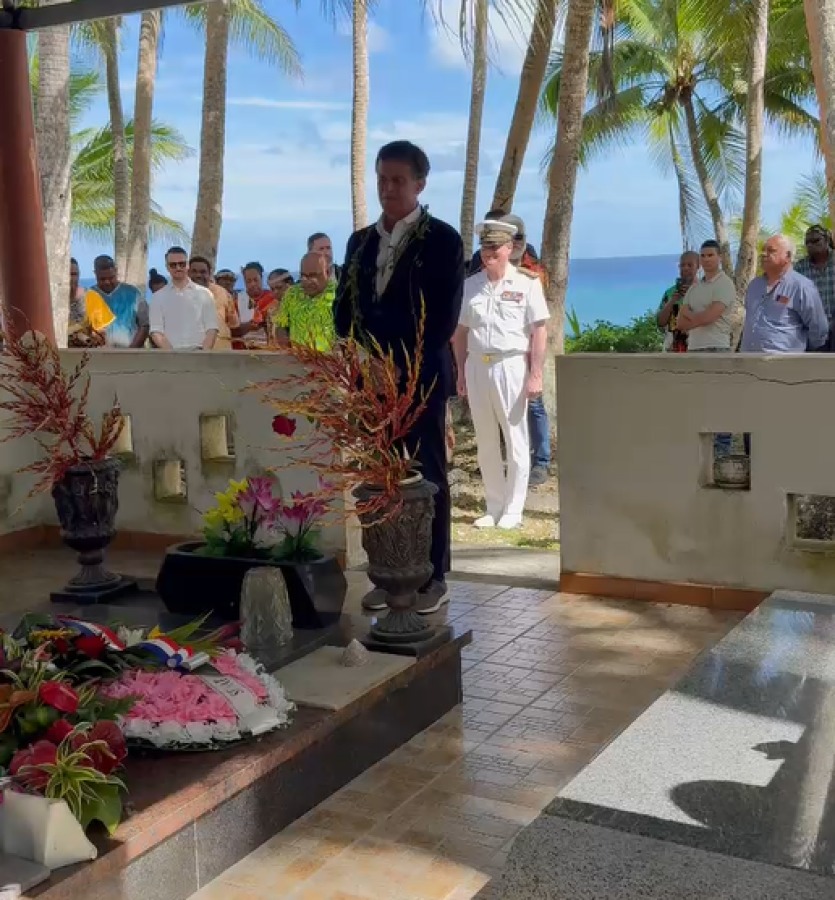 Manuel Valls s'est recueilli devant la tombe de Yeiwéné Yeiwéné, à Maré. Photo Ministère des Outre-mer"Il y a ceux qui passent et ceux qui restent"
