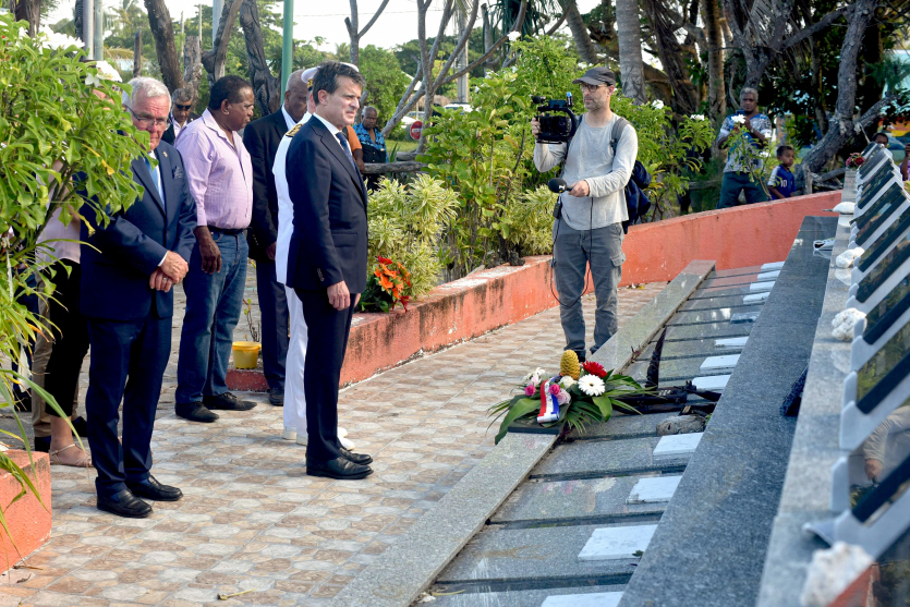 Il a ensuite honoré la mémoire des gendarmes décédés lors de la prise d’otages d’Ouvéa en 1988, puis celle des dix-neuf Kanak morts lors de l’assaut militaire de la grotte qui s’en est suivi.