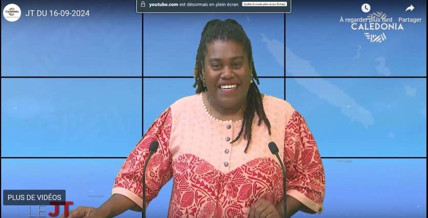 - Caledonia | Crée le 17.09.2024 à 09h40 | Mis à jour le 17.09.2024 à 09h40ImprimerLina Waka-Ceou présente le journal télévisé de Caledonia de ce lundi 16 septembre. Photo CaledoniaRetrouvez le journal télévisé de notre partenaire, Caledonia, sur notre site lnc.nc. Dans cette édition du lundi 16 septembre, le Sénat coutumier marquera le 24 septembre ; " Laisser la parole à la population " ; 24 septembre : entre incertitudes et inquiétudes ; Invité du jour : Général Nicolas Mathéos, commandant de la gendarmerie en Nouvelle-Calédonie ; Caisson hyperbare à l'arrêt, quelles conséquences ?