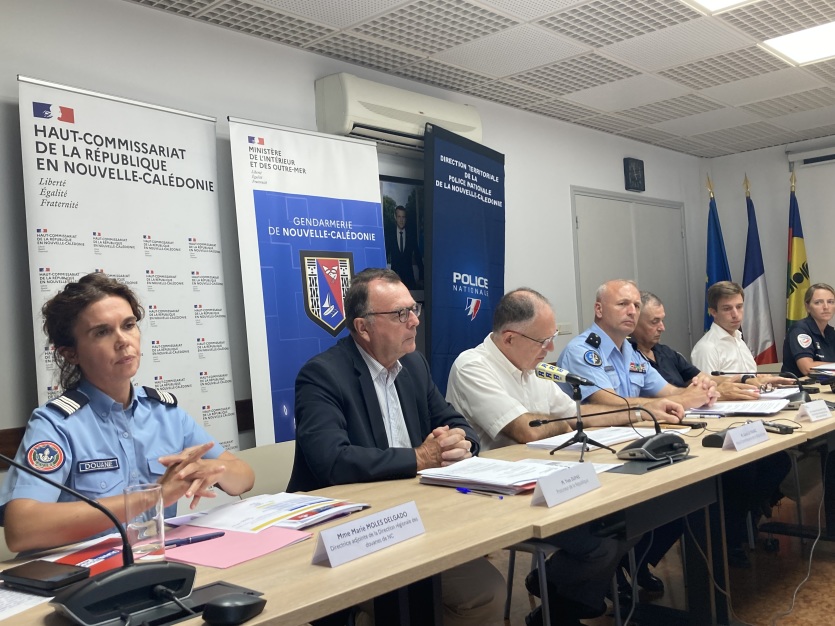 - Baptiste Gouret | Crée le 06.03.2024 à 11h43 | Mis à jour le 06.03.2024 à 11h43ImprimerLe haut-commissaire, entouré du procureur et des représentants des forces de l'ordre, a dressé le bilan 2023 de la délinquance en Nouvelle-Calédonie, mardi lors d'un point presse. Photo Baptiste GouretLe bilan de la délinquance 2023 a été présenté, mardi soir, par le haut-commissaire, le procureur et les patrons de gendarmerie, de police et des douanes. Une tendance inquiète : le nombre de violences intrafamiliales a augmenté de 91 % en cinq ans, faisant de la Nouvelle-Calédonie le territoire français le plus touché par ce fléau.