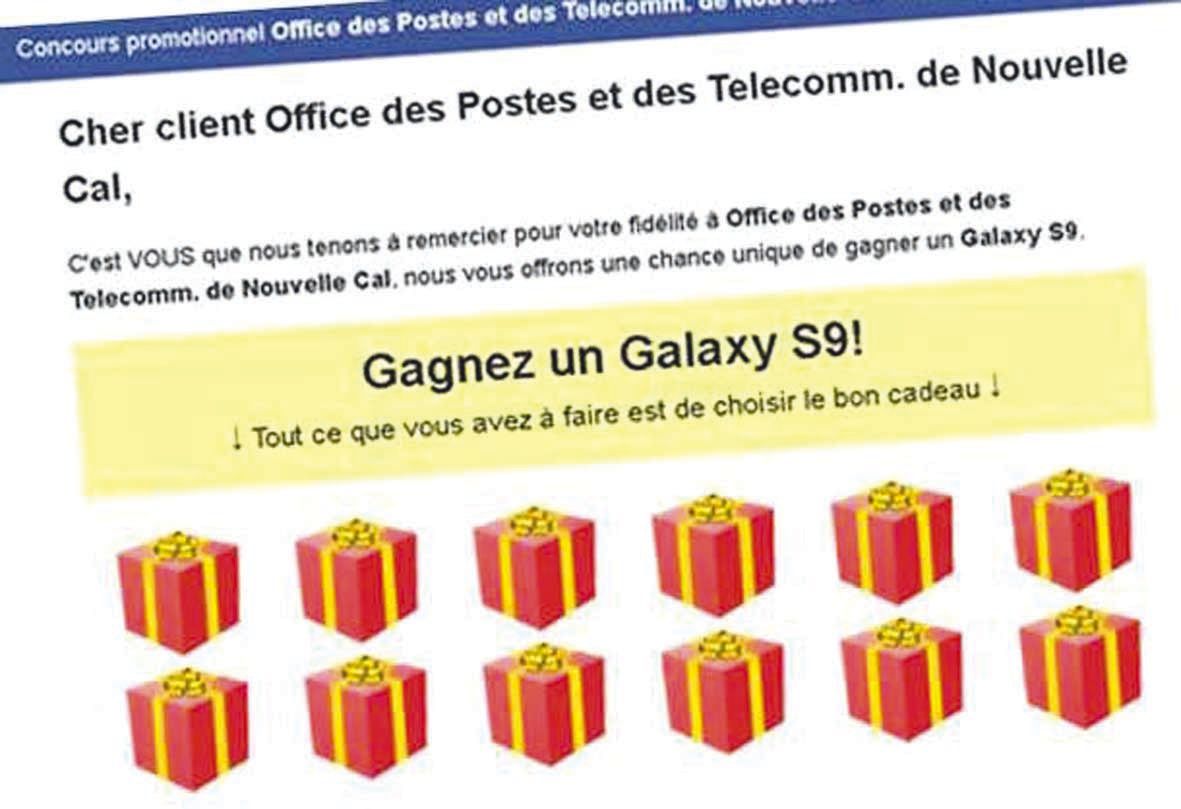 - INTERNET. Non, il n'y a pas de smartphone à gagner…Un supposé jeu, actuellement diffusé sur Internet et les réseaux sociaux, a usurpé l'identité de l'OPT-NC et laisse entendre aux « clients » de l'Office, pour les « remercier pour [leur] fidélité », qu'ils ont « une chance unique deIl vous reste 67% de l'article à découvrir.Cet article est réservé aux abonnés.