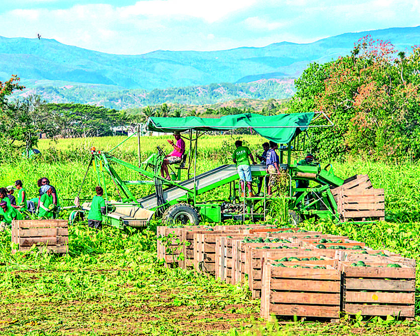 Le développement de l’agriculture, ici une récolte de squash à Bourail, est un enjeu stratégique pour l’autonomie alimentaire de la Nouvelle-Calédonie. Photo Archives Julien Cinier