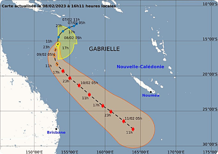 - Actuellement dépression tropicale modérée, le phénomène va continuer à se développer et passera au large du Caillou, vendredi et samedi. Mais il sera assez éloigné de nos côtes.Le phénomène était annoncé depuis plusieurs jours, il se confirme désormais. Ce mercredi après-midi, la dépression tropicale modérée qui se forme au Nord de la Calédonie a été nommée Gabrielle. Et elle va rapidement évoluer. "Tous les centres de prévision cyclonique prévoient uneIl vous reste 90% de l'article à découvrir.Cet article est réservé aux abonnés.