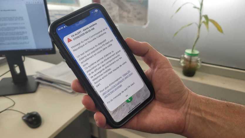 - Julien Mazzoni | Crée le 07.08.2025 à 15h21 | Mis à jour le 21.08.2025 à 17h07ImprimerDe nombreux Calédoniens ont reçu ce message d’alerte ce jeudi matin, accompagné d’une sonnerie stridente. Photo Anne-Claire PophillatVers 8 heures ce jeudi 7 août, une sonnerie stridente a retenti sur le téléphone de nombreux Calédoniens. Un message s’affiche : c’est un test du nouveau dispositif Fr-Alert, qui permet d’alerter la population en cas d’événement grave, comme un cyclone. De nouveaux essais seront effectués dans les semaines à venir.