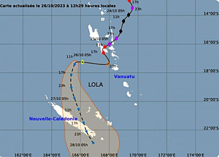 Selon le dernier bulletin que Météo-France NC publie sur ce phénomène, Lola devrait poursuivre une trajectoire vers le sud qui l’amènera à proximité du pays vendredi.