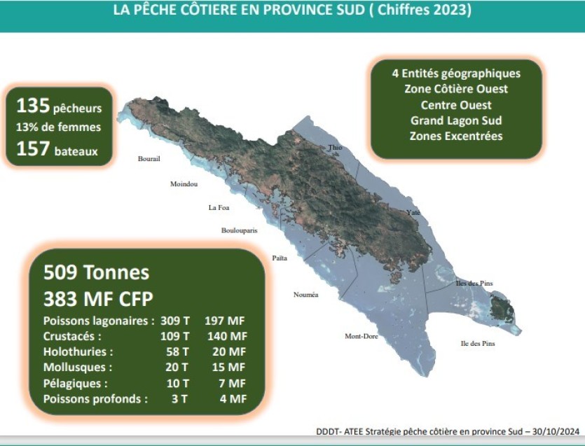 Source : Province Sud"Les assises de 2022 ont permis de définir les grandes orientations pour le secteur en Nouvelle-Calédonie. De là, chaque province décline ces recommandations et mène des orientations en termes d’appui et en termes de modification du code de l’environnement pour tout ce qui concerne la réglementation, l’accès à la ressource, les engins autorisés, etc.", détaille Bernard Fao, du service connaissance et stratégie à la direction du développement durable des territoires (DDDT) de la Maison bleue.