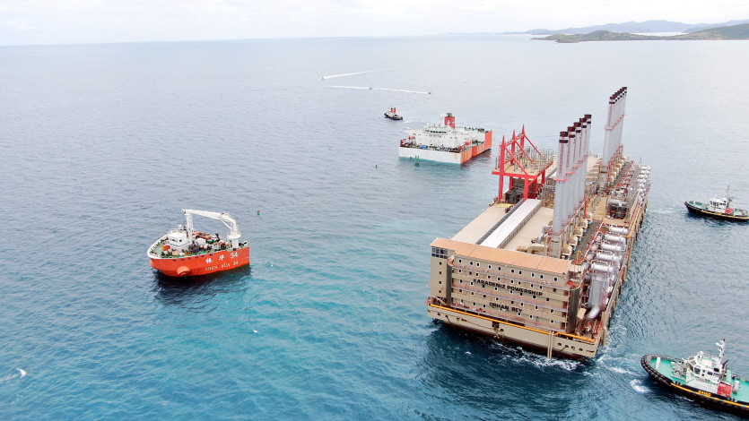- Une manœuvre spectaculaire destinée à dégager la centrale accostée temporaire du navire la transportant a été effectuée mercredi matin au large de Nouville. La superstructure a ensuite été convoyée au Port autonome. D'ici une dizaine de jours, la CAT sera enfin positionnée face à l'usine de Doniambo. Elle doit y rester trois années.Dès 8 heures, les deux parties du convoyeur Zhen Hua34 ont commencé à plonger dans l'eau grâce à un système de ballast, afin de libérer la CAT. Photo Thierry PerronLa centrale accostée temporaire, une fois séparée du navire Zhen Hua34, a entamé son parcours vers le quai numéro 4 du PortIl vous reste 65% de l'article à découvrir.Cet article est réservé aux abonnés.