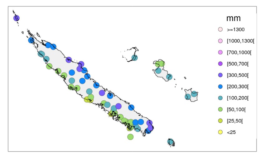 Cumul mensuel des précipitations en janvier. Infographie Météo-France NCLes déficits sont particulièrement marqués sur la côte Ouest de la Grande Terre et aux îles Loyauté. À Lifou, la station de Chepenehe n’a ainsi relevé que 56 mm de pluie, contre une normale proche de 200 mm. À l’inverse, quelques secteurs de la côte Est affichent des excédents ponctuels, notamment à Méa (Kouaoua).