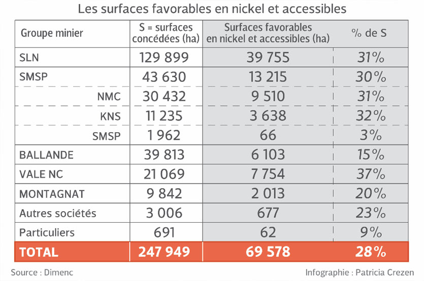 - MINES. Ces chiffres suscitent souvent, depuis longtemps, des commentaires, voire des attaques. Le rapport spécial du Congrès sur les titres miniers, examiné il y a quelques semaines, intègre un éclairage nouveau sur la répartition des concessions en Nouvelle-Calédonie.♦ Étendue Le domaine minier calédonien couvre, fin décembre 2018, 269 632 hectares - sur les 1 857 550 du pays - pour 1 545 titres dont 90 % sont des concessions. Ce droit de prospection, de recherche et d’exploitation est sollicité, puis éventuellement octroyé pour une durée maximaleIl vous reste 93% de l'article à découvrir.Cet article est réservé aux abonnés.