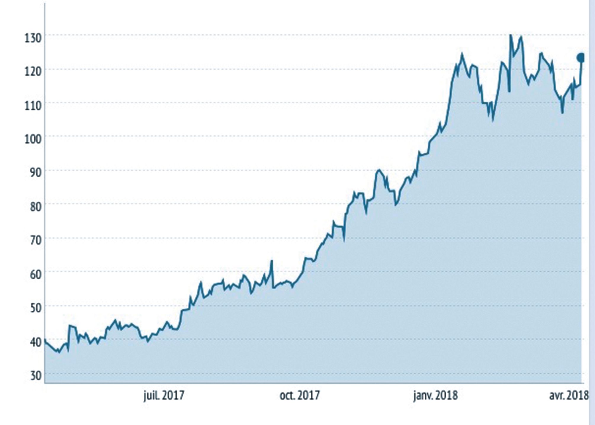 - Économie. Le groupe minier et métallurgique voit, en ce moment en Bourse, le cours de son action tutoyer des sommets désertés depuis six ans. Le titre a même grimpé de 200% en une année.En sports, les commentateurs parleraient d’un décollage à la verticale. Le cours de l’action Eramet a navigué, en ce milieu de semaine, entre 123 et 124 euros, à la Bourse de Paris. Le saut est spectaculaire. En trois mois, la variation est estimée à plus de 10 %. En six mois, à près deIl vous reste 91% de l'article à découvrir.Cet article est réservé aux abonnés.