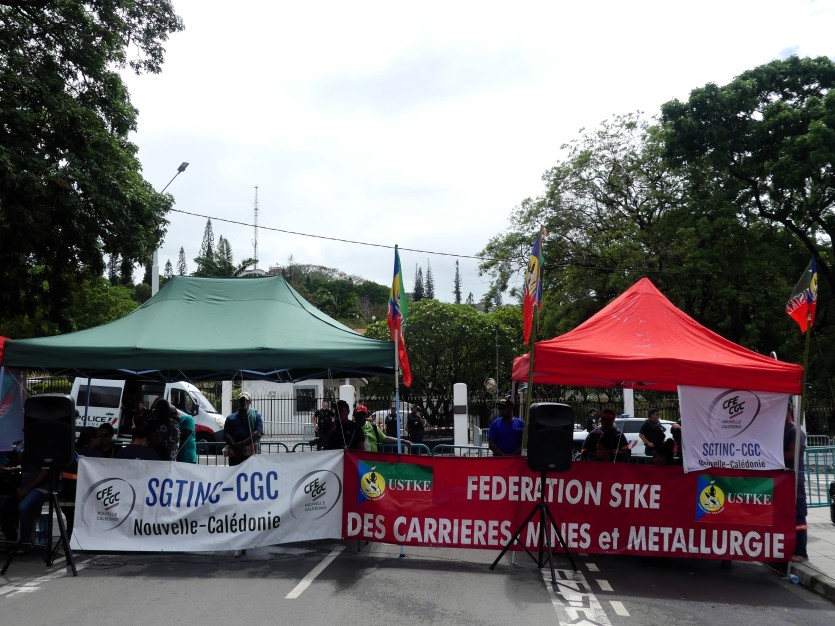 Casquette rouge vissée sur la tête, Bertin Boéré dresse un constat limpide : "Nous n’avons plus de trésorerie, sans aide, la NMC disparaît dans dix jours", lâche le délégué syndical STKE, au milieu de la mobilisation réunie avenue Paul-Doumer, devant les grilles du haut-commissariat de Nouméa, ce mercredi 3 décembre. Organisé par l’intersyndicale (USTKE, Usoenc, SGTINC et CSTNC), le mouvement a rassemblé environ 200 personnes venues "interpeller l’État" sur le "besoin urgent d’un soutien financier" pour assurer la survie immédiate de la Nickel Mining Company, menacée de cessation de paiements.