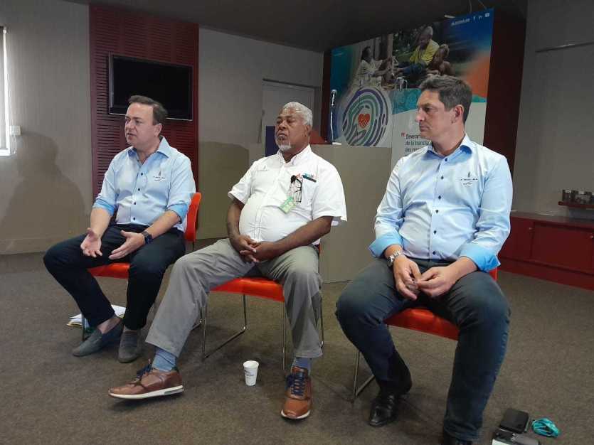 - A.T. | Crée le 02.05.2024 à 07h41 | Mis à jour le 02.05.2024 à 07h41ImprimerJérôme Fabre, actuel directeur général de la SLN sera donc remplacé par Guillaume Kurek, (à droite), ici présents en conférence de presse, le 10 avril dernier. Photo Anthony TejeroL’actuel directeur général adjoint de l’industriel remplacera donc Jérôme Fabre à la tête de la société à partir du 1er juin prochain.